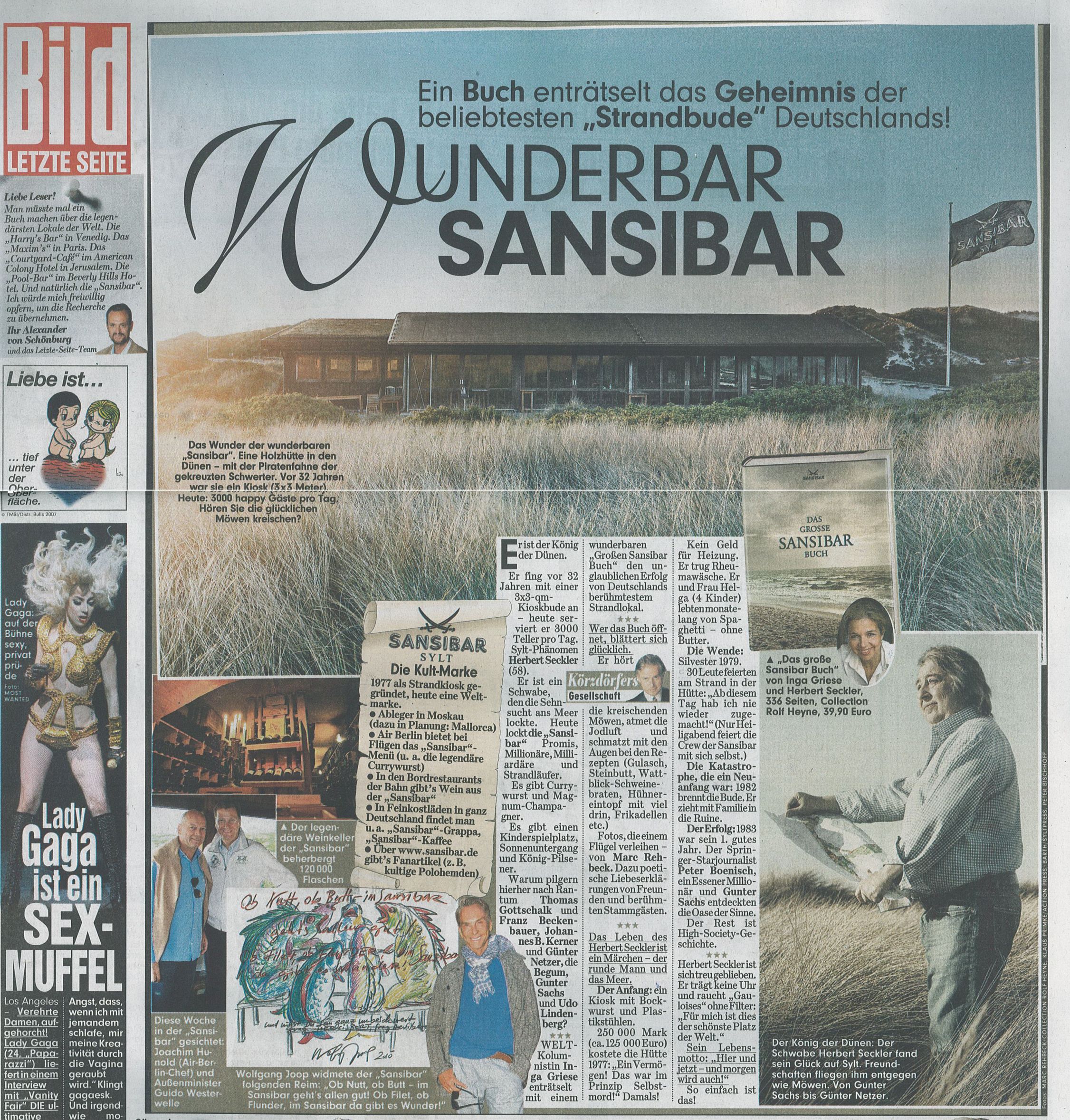 Letzte Seite der Bildzeitung vom 3.8.2010 über die Sansibar