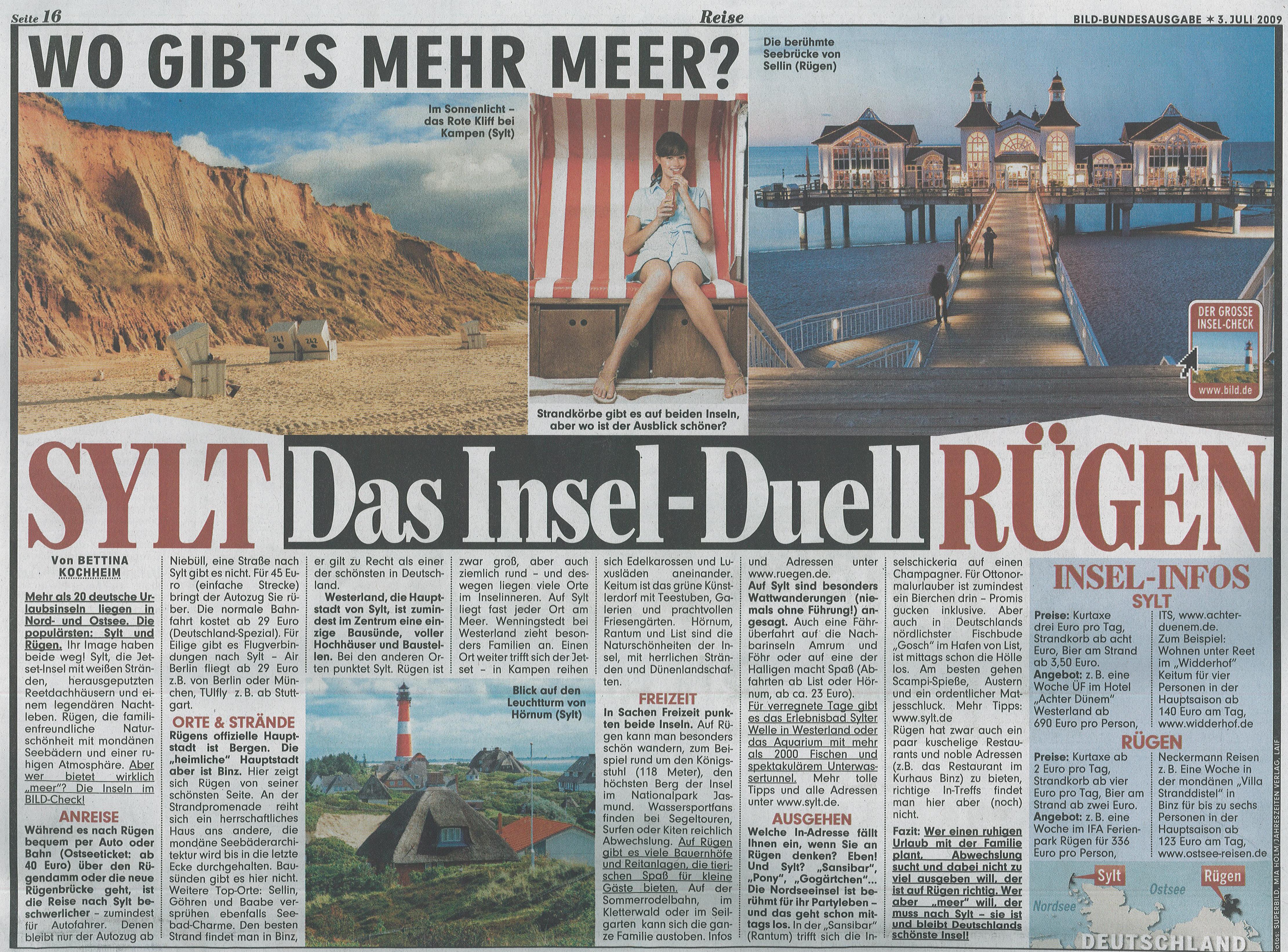 Artikel "Das Insel Duell, Sylt oder Rügen" aus der Bild-Zeitung vom 3.7.2009