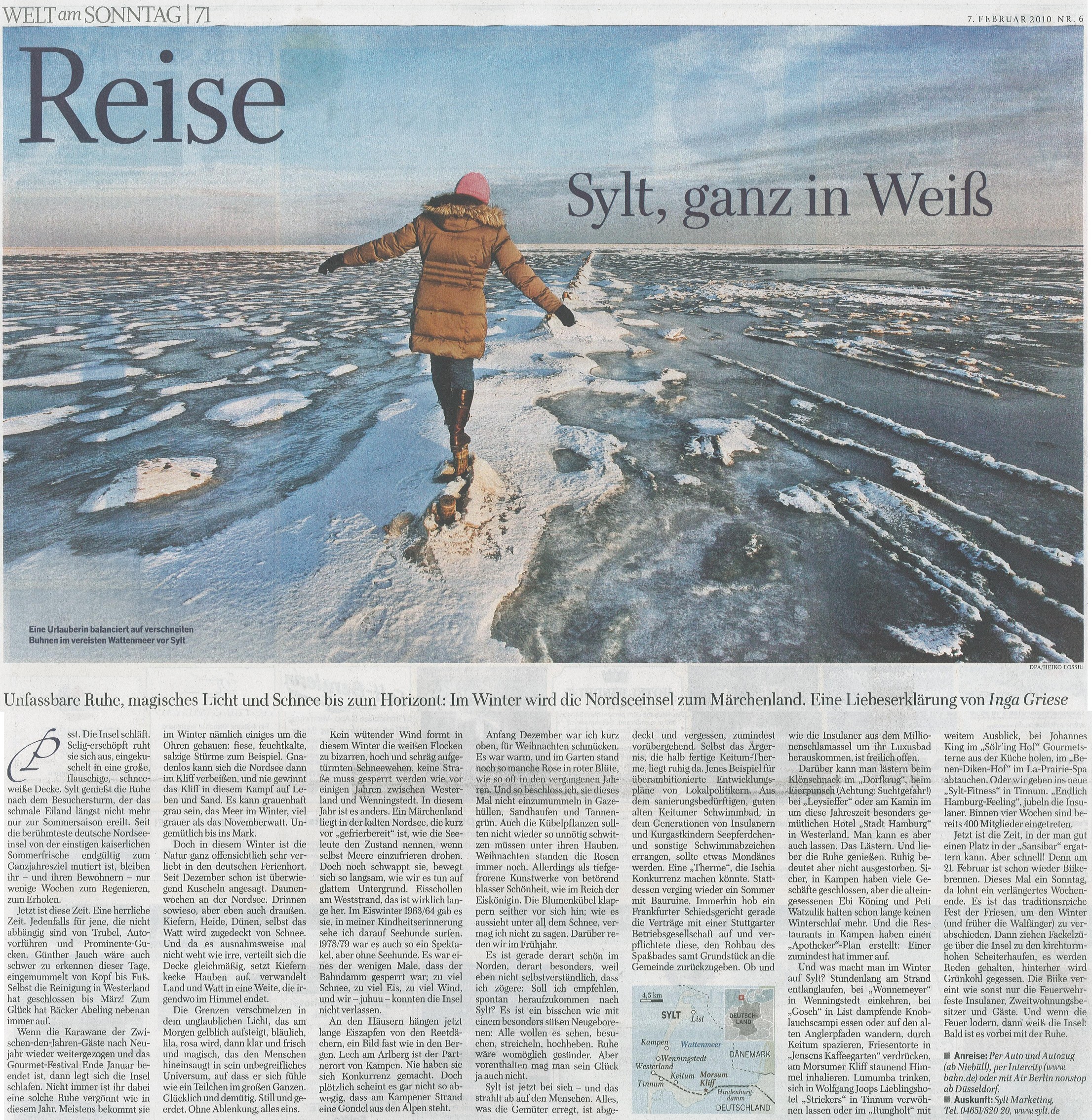 Artikel "Sylt, ganz in weiß" aus der "Welt am Sonntag" vom 7.2.2010
