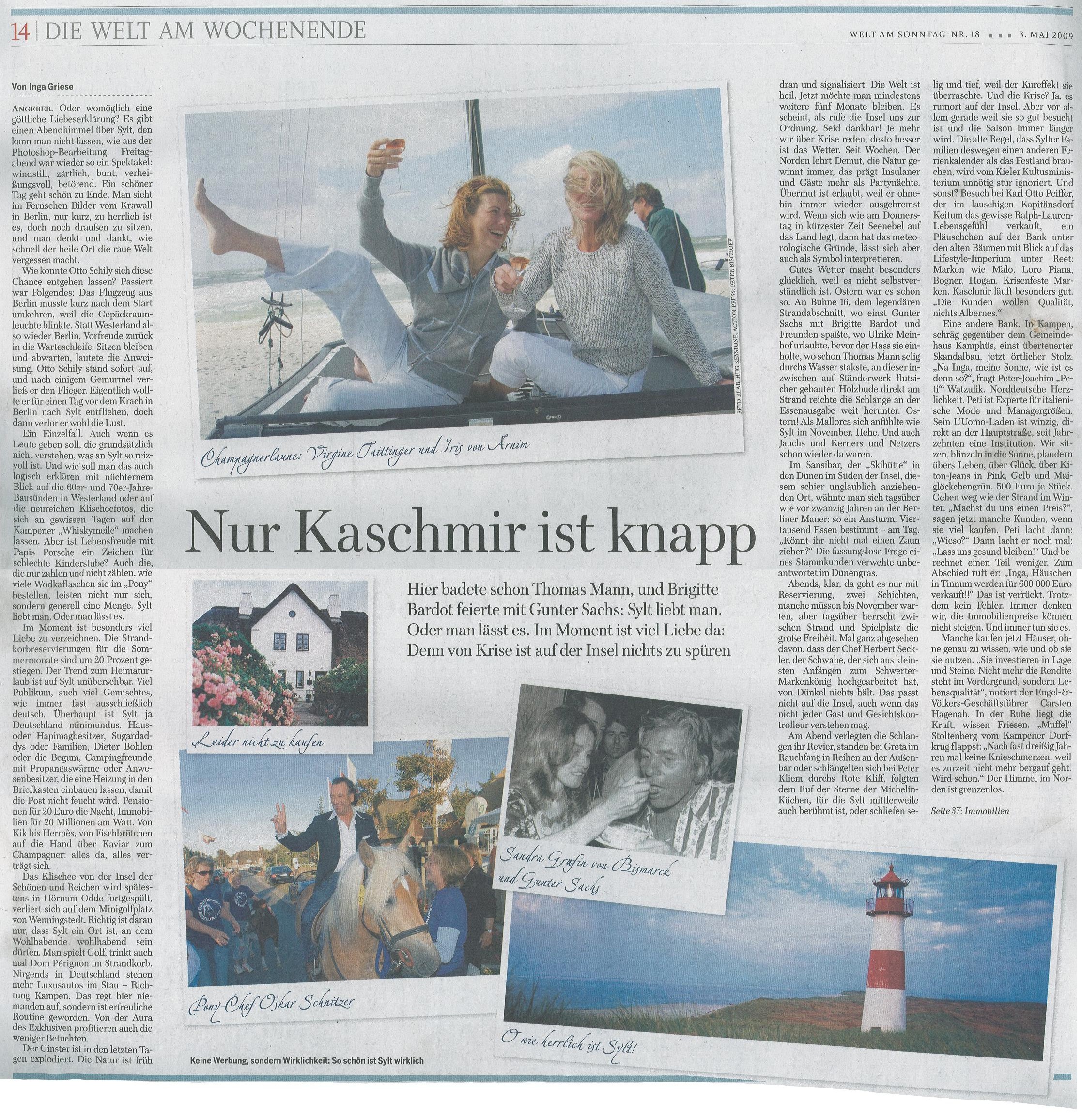 Artikel "Nur Kaschmir ist knapp" aus "Die Welt am Wochenende" vom 3.5.2009